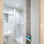 De badkamer is uitgerust met een apart toilet en een douche.